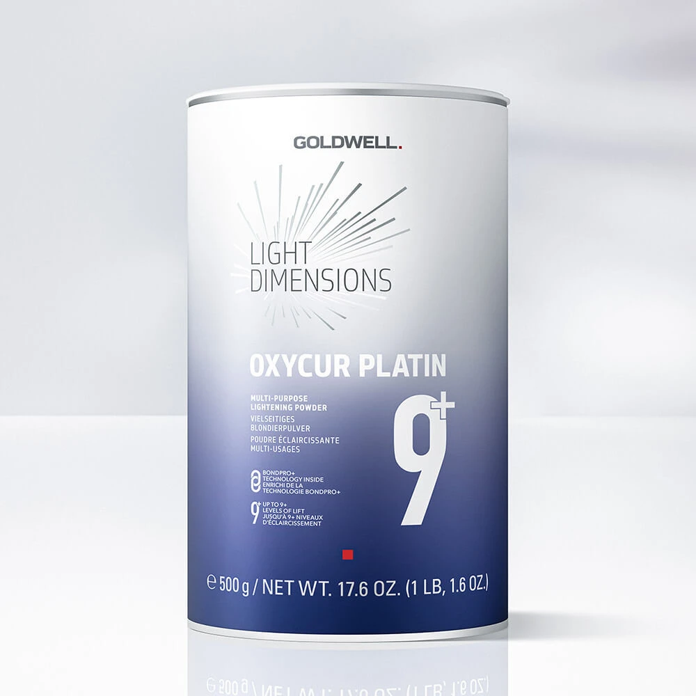 New and improved Oxycur Platin! The Goldwell Light Dimensions Oxycur Plantin 9+ is a high performance lightening powder that delivers up to 9+ levels of lift while respecting the hair’s structure. With integrated BondPro+ technology, it helps to protect the hair fibres from damage for a powerful, consistent and gentle lift, while the anti-yellow system helps to ensure the clearest and most even results. The multi-purpose formula is suitable for any lightening service or technique, from full-head application to highlights. Dust-free, it mixes easily into a creamy consistency.