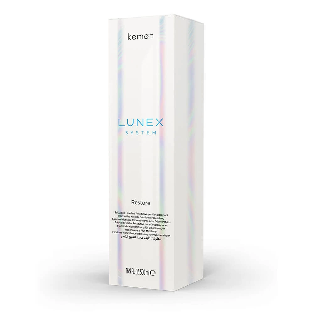 Adding Lunex Restore to the bleaching mixture helps to protect and maintain the hair fibre compact during bleaching. Tests done at the Kemon research and development laboratories have shown that a bleaching service done with Lunex Restore makes the hair stronger and more resistant to breakage. Lunex Restore does not affect the lightening power or processing time of the bleach with which it is mixed.