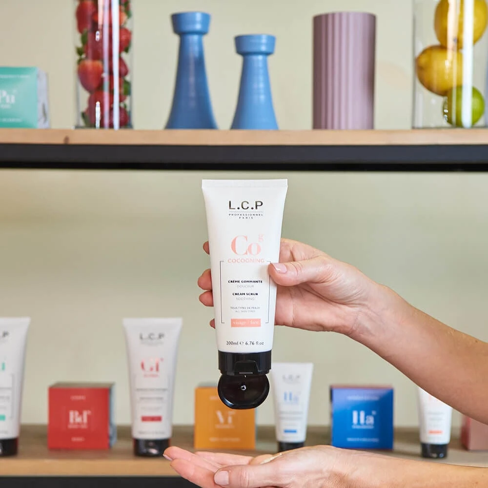 The L.C.P Professionnel Paris Cocooning Soothing Exfoliating Cream Scrub gently removes impurities to boost skin’s radiance. Created in France, its cream formula features xanthan and talc to exfoliate the skin, while vegetable glycerin adds moisture. A small amount is enough to leave skin feeling soft and smooth with a delicate fragrance.