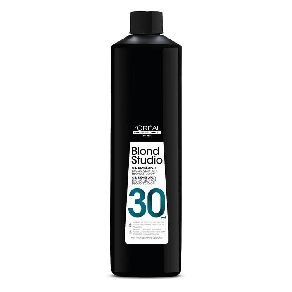 The 30-Volume Oil Developer is to be used on lengths and ends only. Blond Studio 9 Oil Developer is to be mixed exclusively with Blond Studio 9 Lightening Powder.