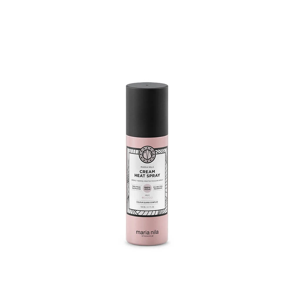 A nourishing heat protecting cream spray that rebuilds damaged hair and prevents split ends while adding subtle shine to the hair. While heat dries out the hair when using hot tools and blow dryers, the Cream Heat Spray provides moisture to protect the hair. The Cream Heat Spray has a fresh-fruity, floral scent of peach, apple and rose. Colour Guard Complex helps preserve the colour by protecting your hair from UV radiation and free radicals. All Maria Nila products are 100% vegan and PETA approved as not being tested on animals.
