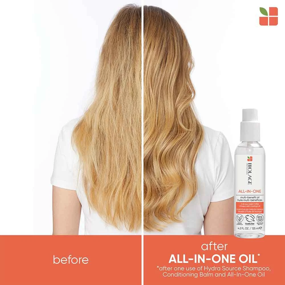 All in One Multi-Benefit oil with moringa oil for exquisite shine, hydration and easy detangling. This weightless, fast-drying and vegan* formula adds nourishment, shine, softness and manageability to hair. Suitable to use as a pre-shampoo, leave in for styling or overnight treatment for softness.