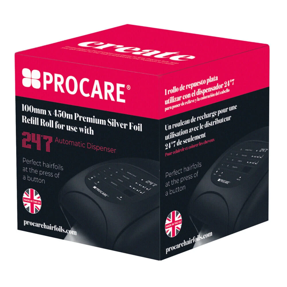 Premium aluminium silver foil refill for use with the Procare 3rd Generation 24*7 Hair Foil Machine. Supplied on an easyfit core to make re-loading your 24*7 Dispenser incredibly easy. Strong and flexible, suitable for all colouring techniques. Perfect width to suit all hair colouring needs. Foil thickness: 18μm +/-.