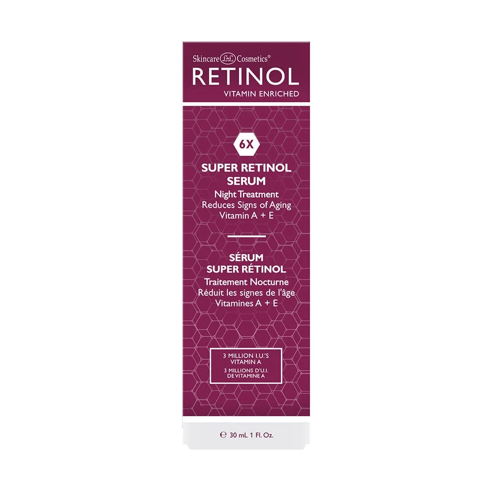 6x Retinol Super Serum restores the look of smooth, beautiful and glowing skin with 3 Million I.U.’s of Retinyl Palmitate. This unique night-time accelerator contains six times the potency of the Anti-Wrinkle Facial Serum. It lifts and firms as it targets lines, wrinkles, dark spots, pores and blemishes while encouraging your skin’s renewal process, all while you sleep. It helps to improve existing skin damage, enhances radiance, and stimulates collagen production for a firmer, more youthful appearance. Add this intensive serum to your night-time Retinol skincare regimen to achieve optimal anti-aging effectiveness. Start by adding a few drops 3 to 4 nights per week and gradually increase to nightly usage.