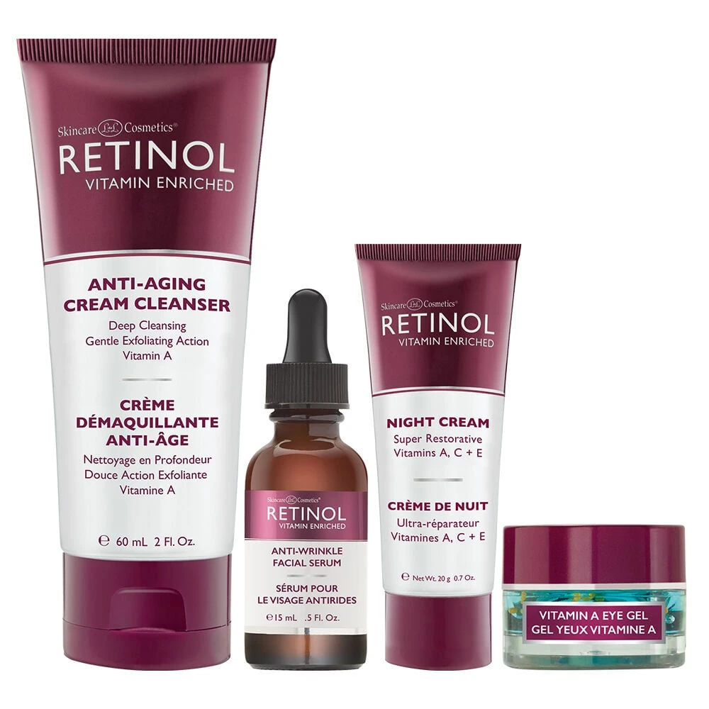 Whether you are a first time user of Retinol or need a convenient set for travel, our Anti-Aging Starter Kit is the perfect solution for you. The Anti-Aging Starter Kit contains smaller versions of 4 of our skincare products to help you become familiar with our Retinol-based skincare line: Anti-Aging Cream Cleanser 60ml, Vitamin A Eye Gel 7g, Night Cream 20g, Anti-Wrinkle Facial Serum 15ml.