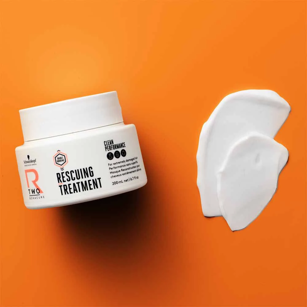 Bonacure R-TWO Rescuing Treatment restructures and repairs damaged, over-processed and stressed hair. The double-bonding technology forms new bonds, preventing future damage for strong, healthy-looking hair and prolonging salon results. The silicone-free** formula also detangles and nourishes hair for smooth, silky results.