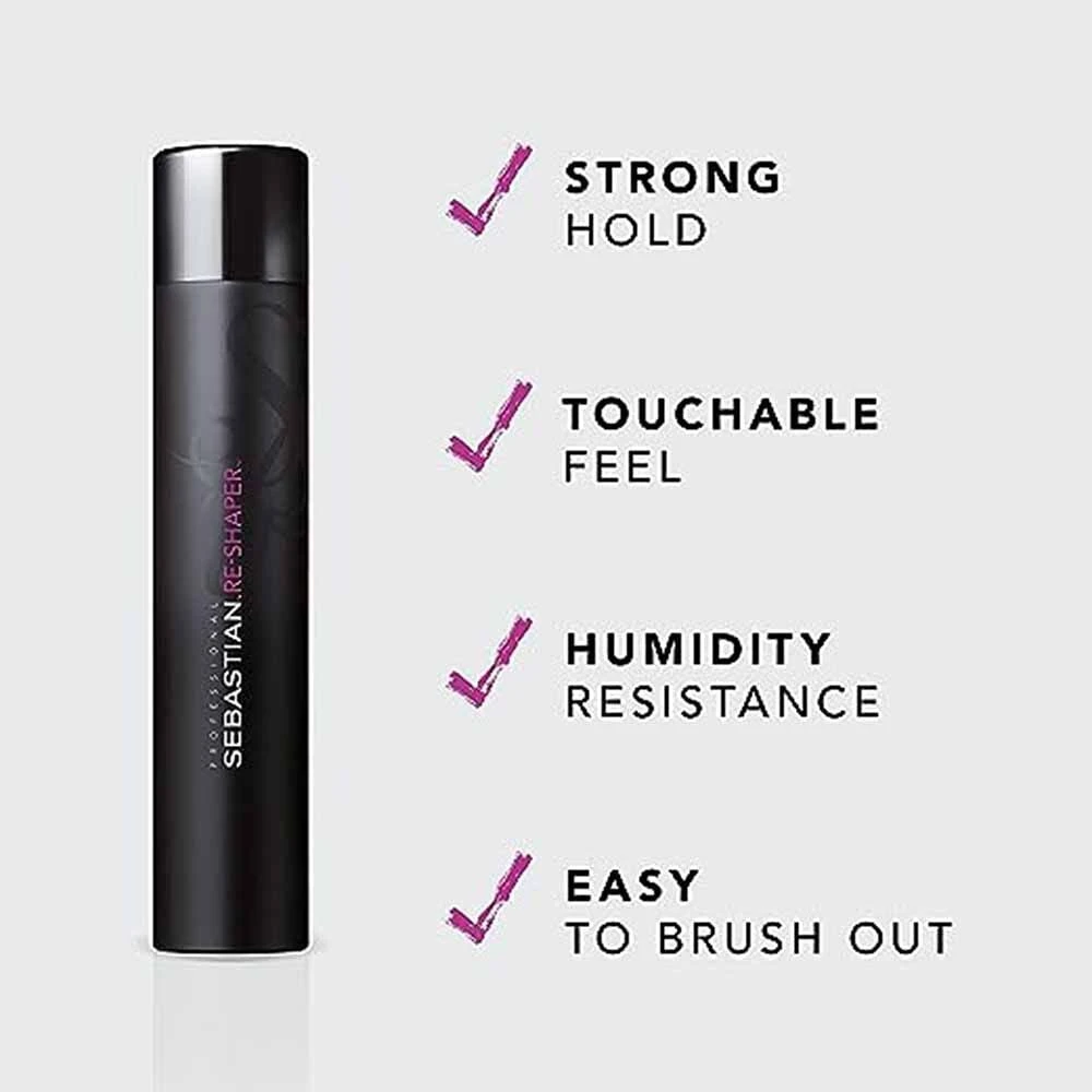 Create endless hairstyles with Sebastian Professional Re-Shaper Strong Hold Hairspray. This professional hairspray provides a strong hold and touchable feel at the same time and is easy to brush out so the look can be changed and re-worked as often as you want. Suitable for all hair types, Sebastian hairspray gives a long-lasting hold and protects hair from the effects of humidity.