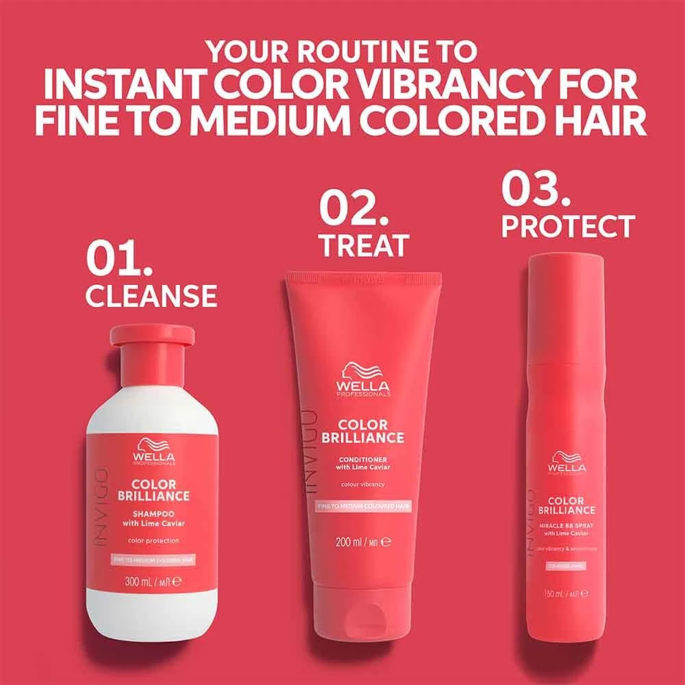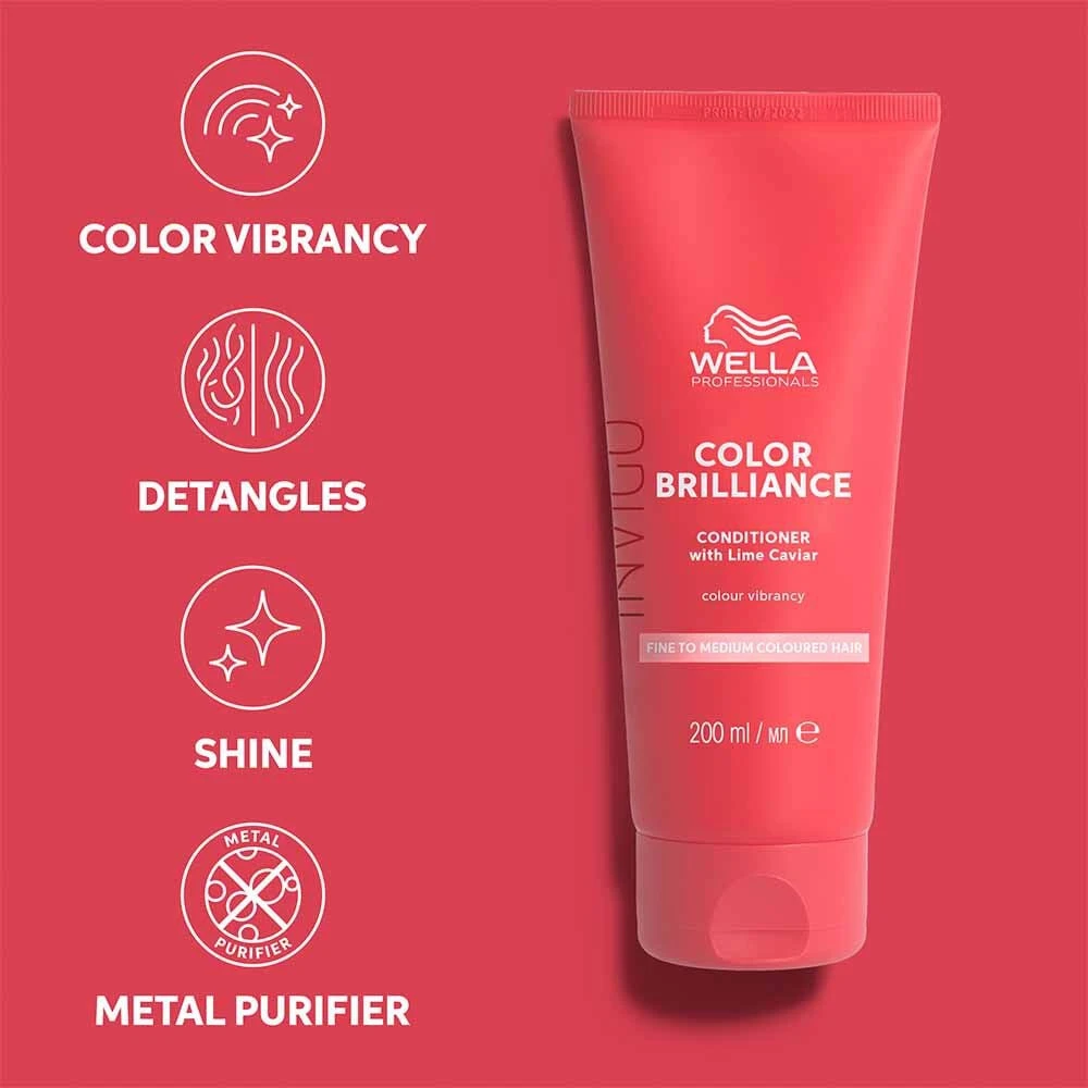 Keep coloured hair full of life with Invigo Color Brilliance by Wella Professionals, specially formulated Color Brilliance-Blend™, which includes copper encapsulating molecules that help maintain colour vibrancy and histidine and vitamin E, which help to control the oxidation process after colouration, protecting colour. Invigo Color Brilliance Conditioner for Fine or Normal Hair is a moisturising conditioner with lime caviar that is specifically created to improve hair surface and enhance colour radiancy, leaving it looking beautifully shiny.